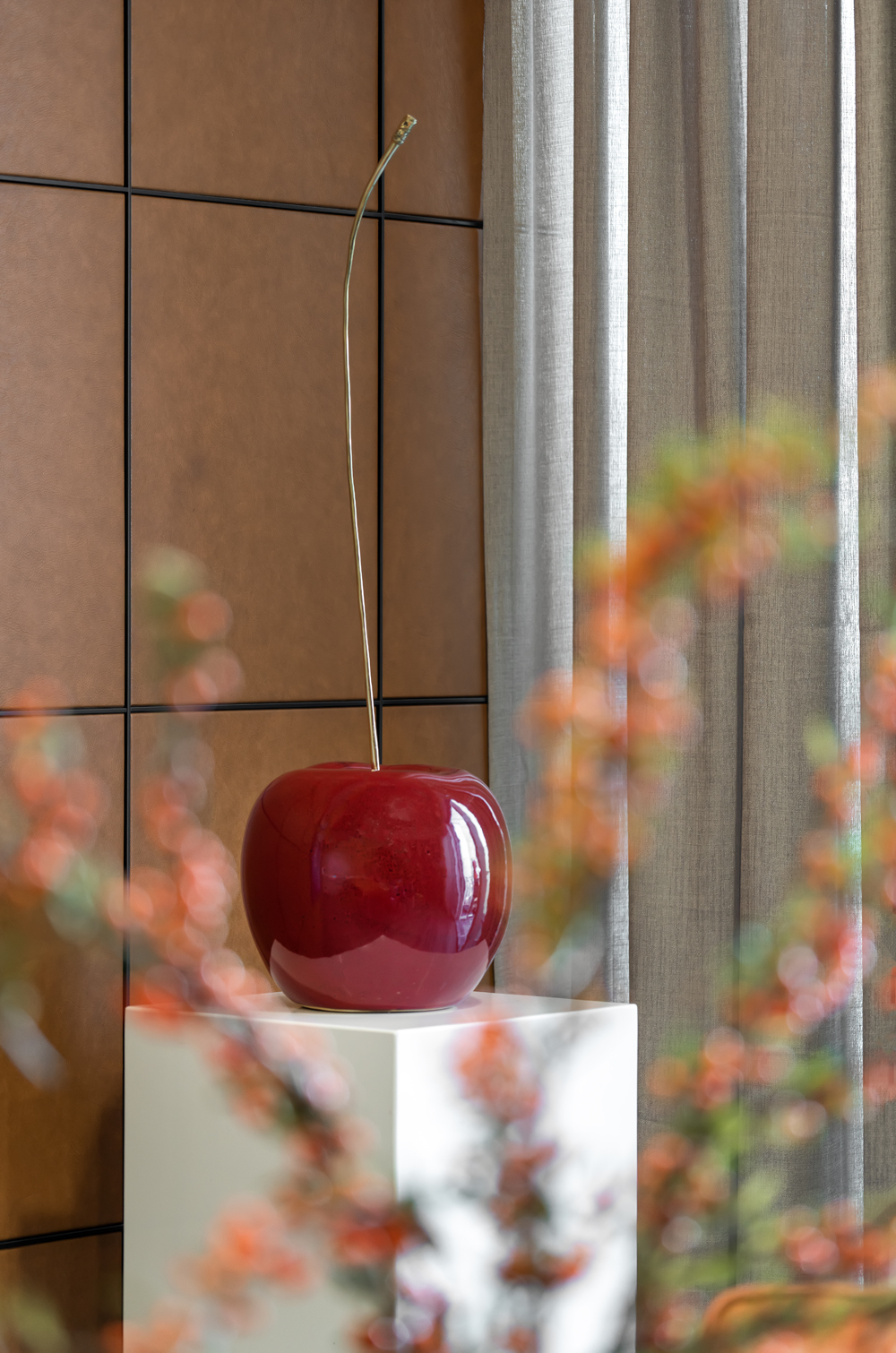設(shè)計除了考慮到會議培訓(xùn)時的功能性需求,同時也關(guān)注了空間的藝術(shù)性表達(dá),彰顯客戶精尚不羈的美學(xué)風(fēng)范。紅蕊萌動,清新雅致,櫻桃擺件形象生動,大自然無時不刻在賦予人們關(guān)于美學(xué)的靈感啟迪,或絢爛,或無華,或凝練,或簡約,交織譜寫新的空間藝境。