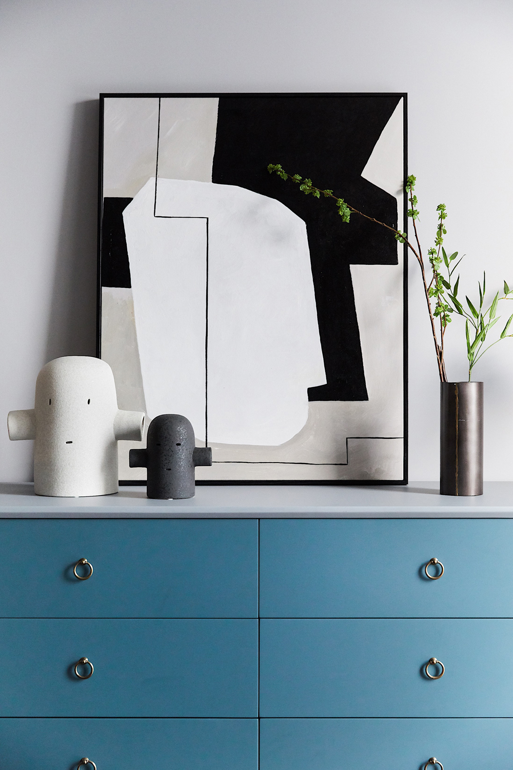 暖調(diào)米灰擔(dān)綱起空間本色,沒有一絲多余的色彩,溫煦的陽光和簡約的線條組合,空間是通透輕盈的。涂鴉式掛畫寥寥幾筆鏈接起生活的詩意與自在,于平淡中抒寫不凡。