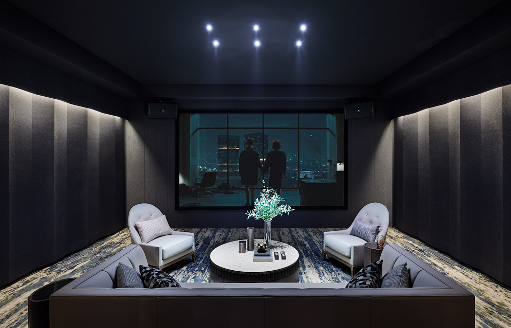 負(fù)一層的影音室營構(gòu)了一個家人互動的休閑場景,智能化影音設(shè)備在有限的空間里提供了無盡的想象,通過豐富多彩的感官體驗令情緒得到放松。