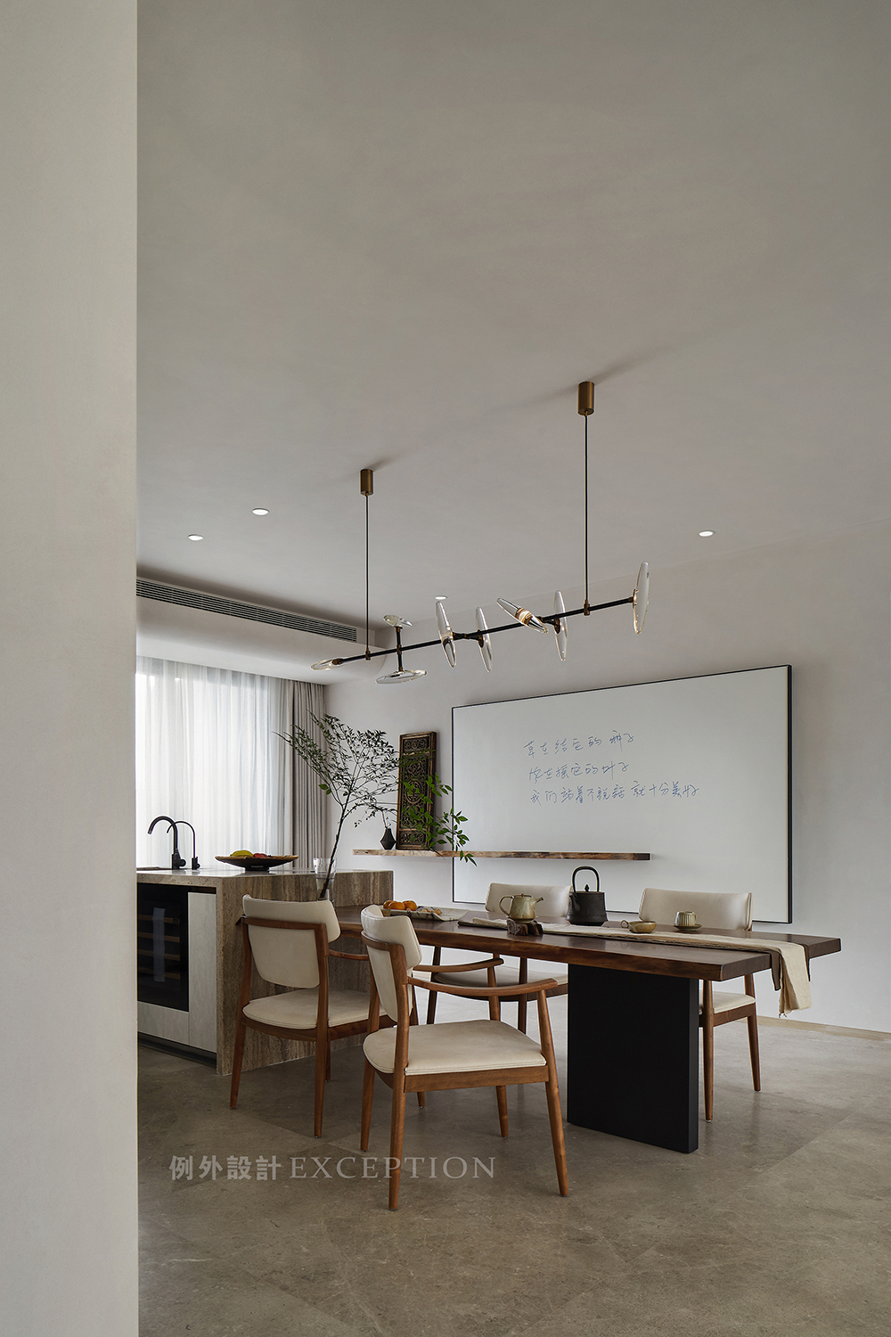 餐廳與西廚島臺(tái)連成一體,為家人的就餐時(shí)光增添了更多的選擇性。木質(zhì)多功能長(zhǎng)桌既是品嘗人間風(fēng)味的歡樂(lè)場(chǎng),也是家人休閑桌游的決勝地。