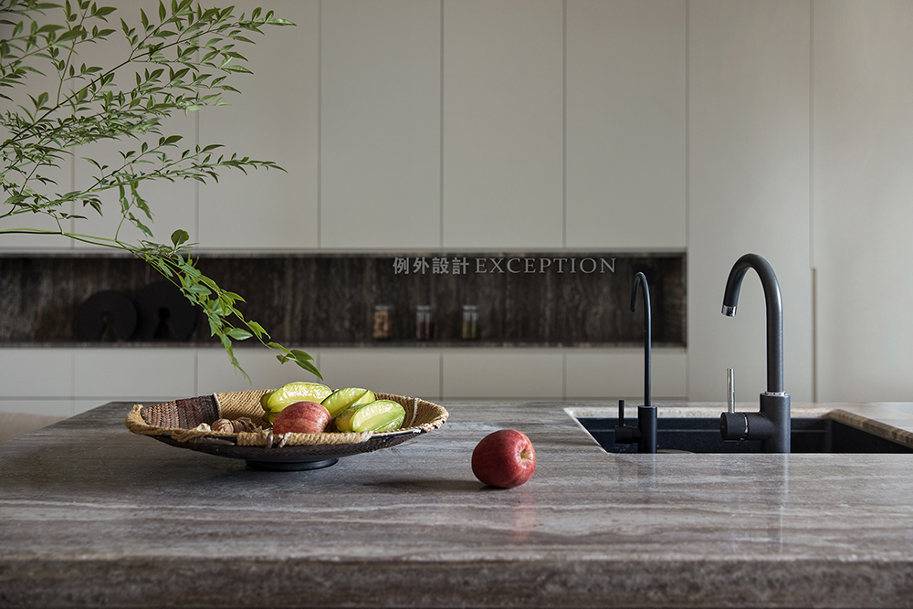 以最自然的肌理去延伸對(duì)于心之所向的追溯與體味,似有若無(wú)的墻面紋飾,獷然可感的水紋地面,若微風(fēng)吹皺一池春水,仔細(xì)一看,又有著靜好歲月里的森活木趣,溫厚古樸,設(shè)計(jì)喚醒了空間的包容與沉穩(wěn),淺斟慢酌,甘之如飴。