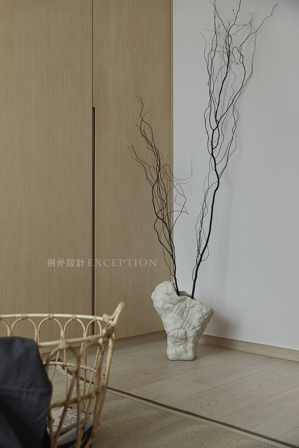 給空間呼吸的自由,只留下日光清風(fēng)如約而至,擁抱大地之美,仿若踏足秋葉紛飛的林間,靜靜地隔絕洶涌而來(lái)的喧囂。繼續(xù)前行,因著一簇柔韌的新綠而眼前一亮,空間的成長(zhǎng)與清雅在簡(jiǎn)素的畫(huà)面中詩(shī)意叢生。