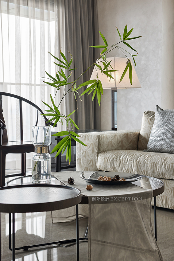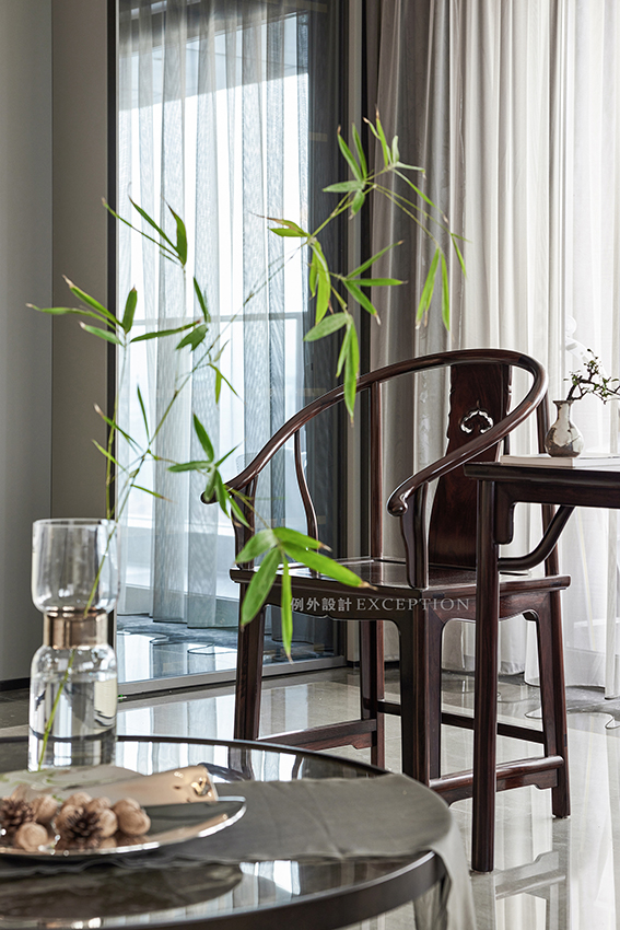古人愛竹,愛其高潔的風(fēng)骨,寧可食無肉,不可居無竹。一葉修竹的青翠穿越千年,在如今的人世風(fēng)物里,和諧相生,風(fēng)雅猶存。從古雅的圈椅和現(xiàn)代形制的沙發(fā)之間跳脫出來,靈動(dòng)娉婷,仿若接續(xù)了兩個(gè)世界,給空間引入秀逸與安然。