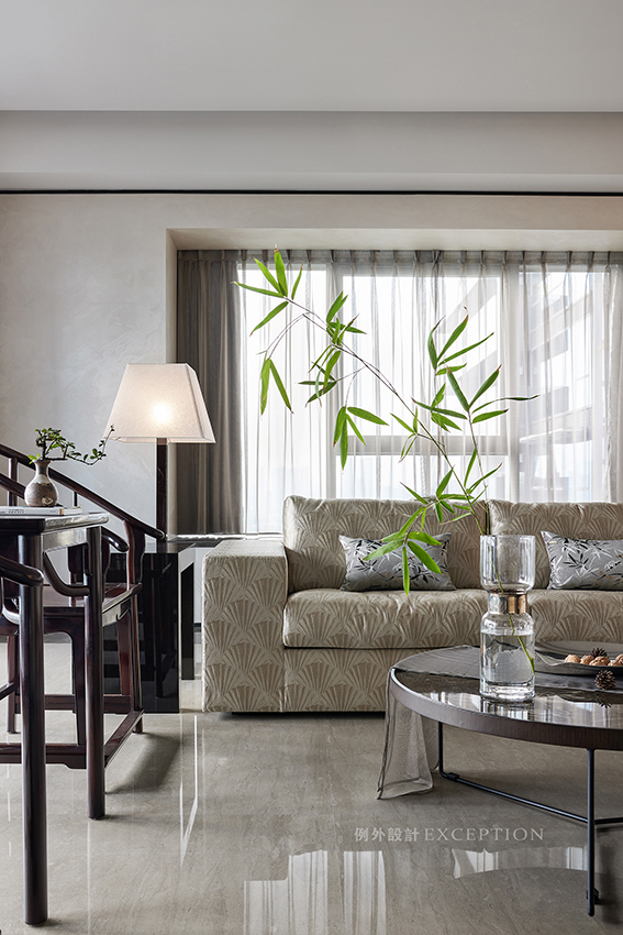 設(shè)計(jì)著眼居者的生活需求與審美氣度,極簡灰白的第一視感融入淡雅與舒適,光影的流連,材質(zhì)的碰撞,尺度的通暢,化繁為簡,一絲竹韻瞬間將溫文爾雅的東方氣韻鋪陳開,享受沁然如水的安靜時(shí)刻。