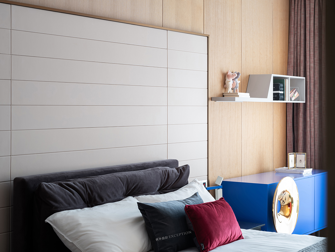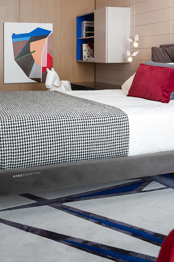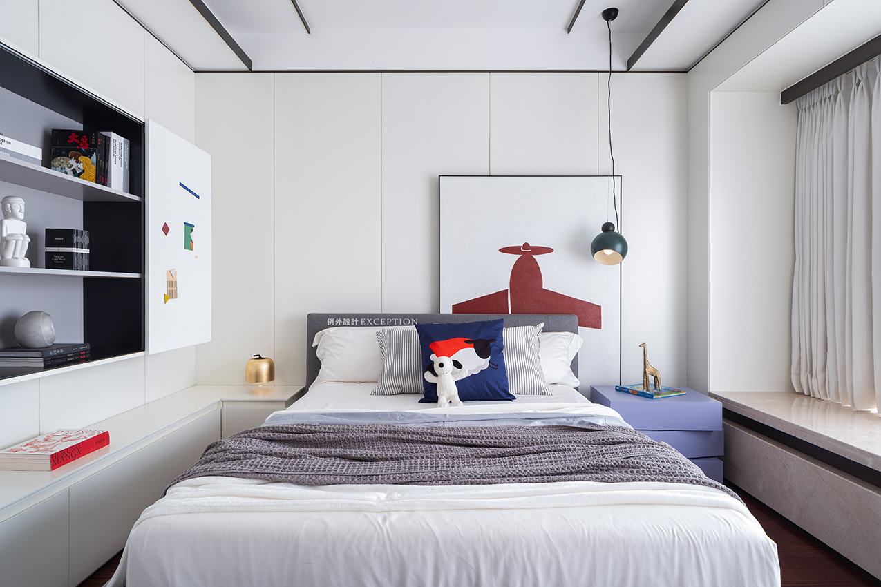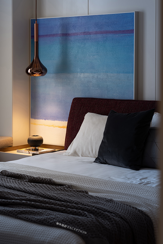 對藝術(shù)的向往不分年齡,無關(guān)時月。長輩房以木色塑造平實質(zhì)樸的意境,飛鳥燈玲瓏巧致,與燕尾元素地毯一起賦予空間祥和美滿的生活愿景。當(dāng)悠揚的曲調(diào)從嵌入式音箱里緩緩而出,一切都恰到好處,最好的狀態(tài)便是隨心所愿地墜入對生活的本真期待,慢慢去感悟。
