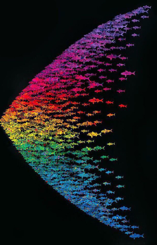 身披最個性的七彩,向著心中的大海溯游,沿途有暗潮洶涌,也有霞光,漫天星河閃耀,在尋找自由與風(fēng)景的征途中它們便是最美的風(fēng)景,設(shè)計師以藝術(shù)的呈現(xiàn)賦予了空間動感多彩的生命力。