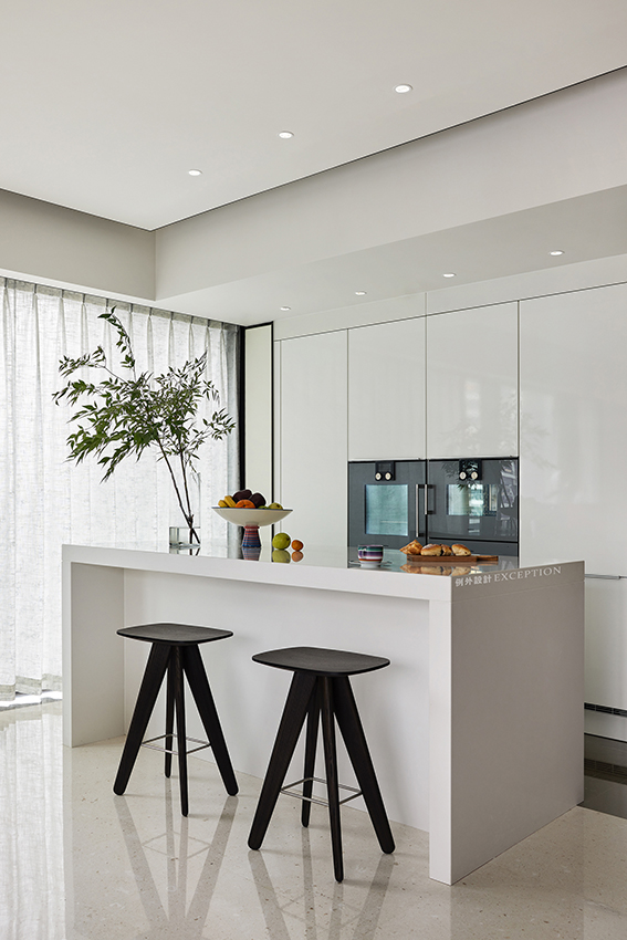 在一片純白的視像中,設(shè)計抽離了多余的表達(dá),留白更多驚喜迎接居者的創(chuàng)造。夫妻倆的獨處時光,制造彼此心領(lǐng)神會的浪漫,默契在空間游走,陽光隨薄紗流轉(zhuǎn),藝術(shù)成為空間里流動的一道人文風(fēng)景。