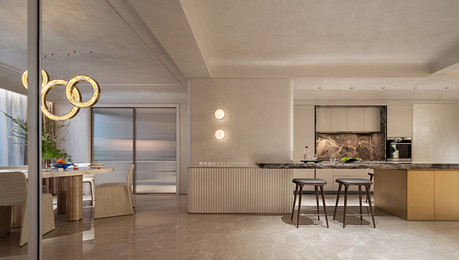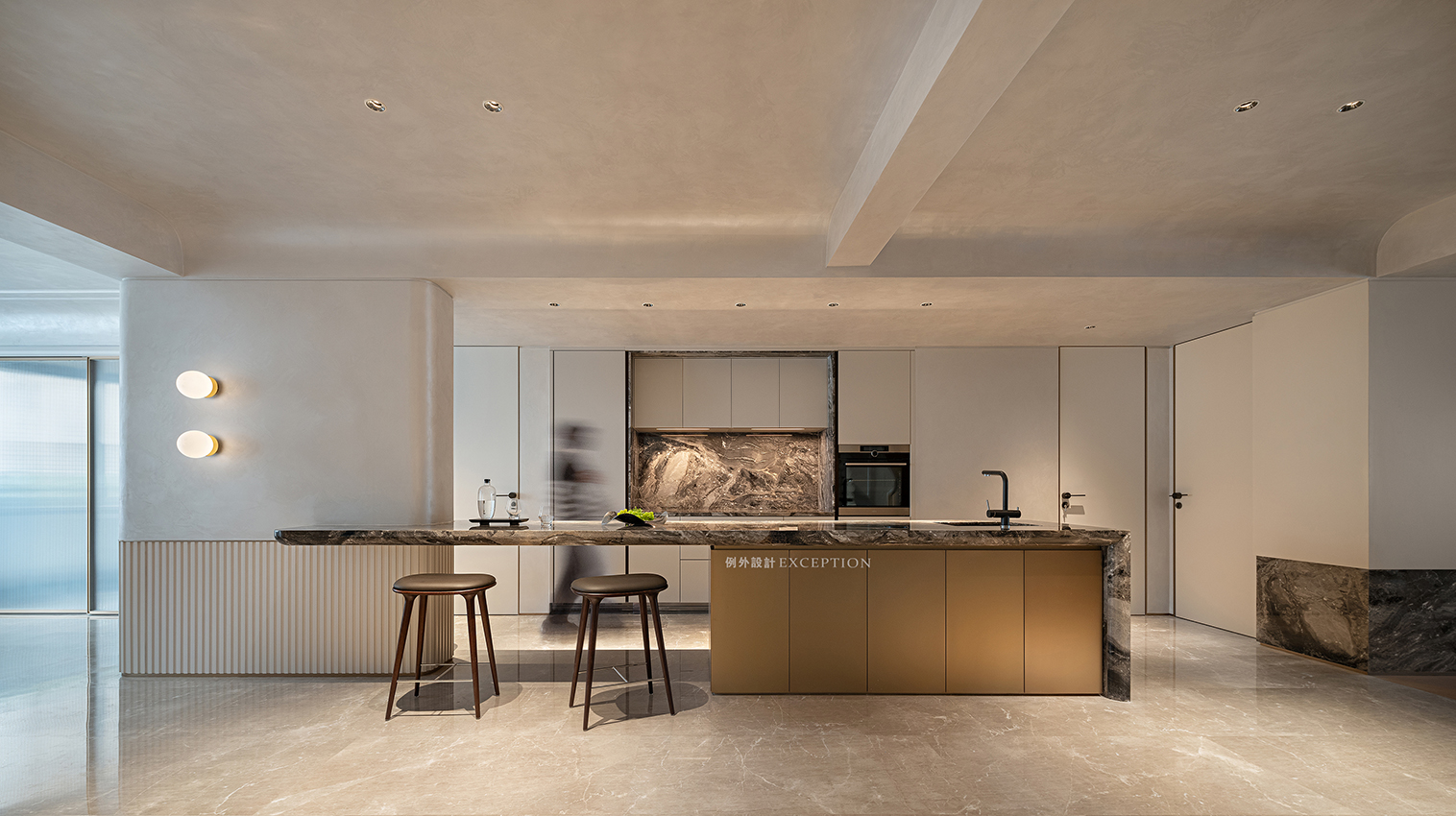 純凈的空間視野為后續(xù)的生活留駐更多的成長可能性,大理石島臺結(jié)合原始墻體打造出氛圍感十足的小酌時光。餐桌和島臺如同默契無言的伙伴,陪伴著屋主一日三餐的溫暖光景,在風(fēng)味的試探中鐫刻生活樸質(zhì)無華的底色。