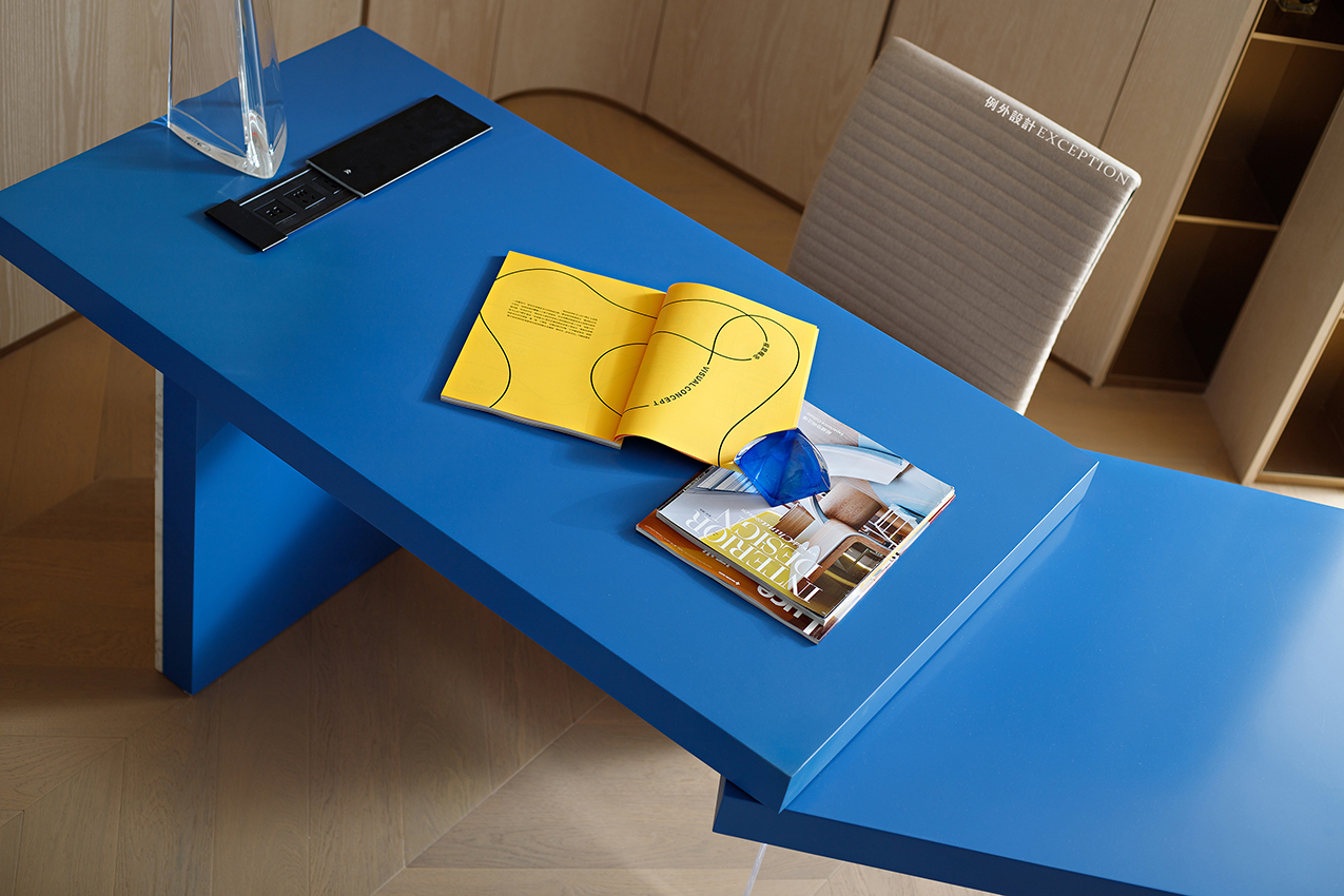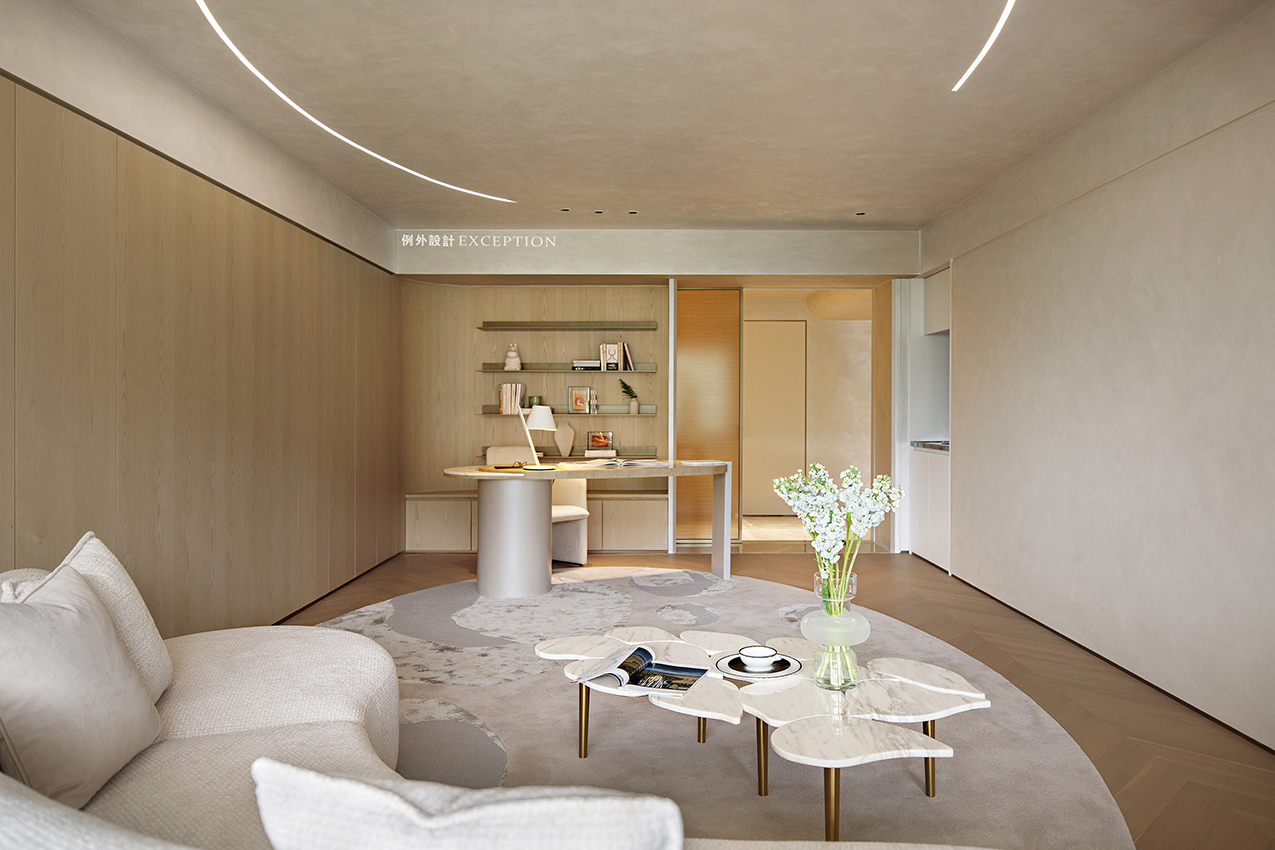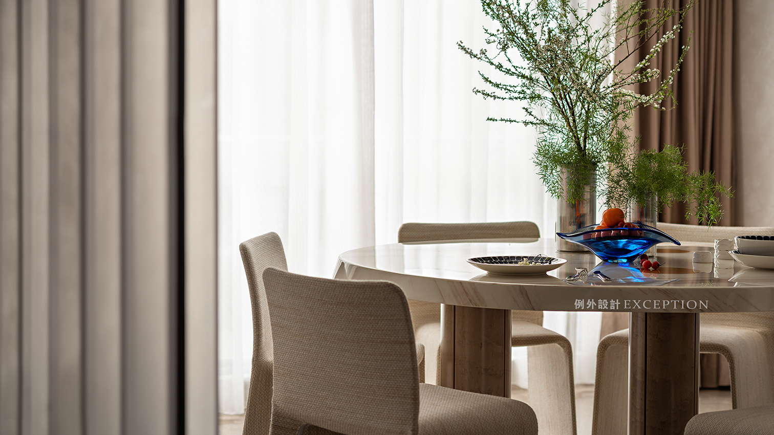 推開家門,花瓣椅以擁抱的姿態(tài)問候每個歸來的家人,圓形葉片凹紋散落在柜體表面,鐫刻下生命蓬勃的印跡。360度可旋轉(zhuǎn)屏風(fēng)朦朧了空間的景致,那些關(guān)于美食的記憶在視線的游移里愈發(fā)清晰,因?yàn)榧?,隨時都會有驚喜發(fā)生。