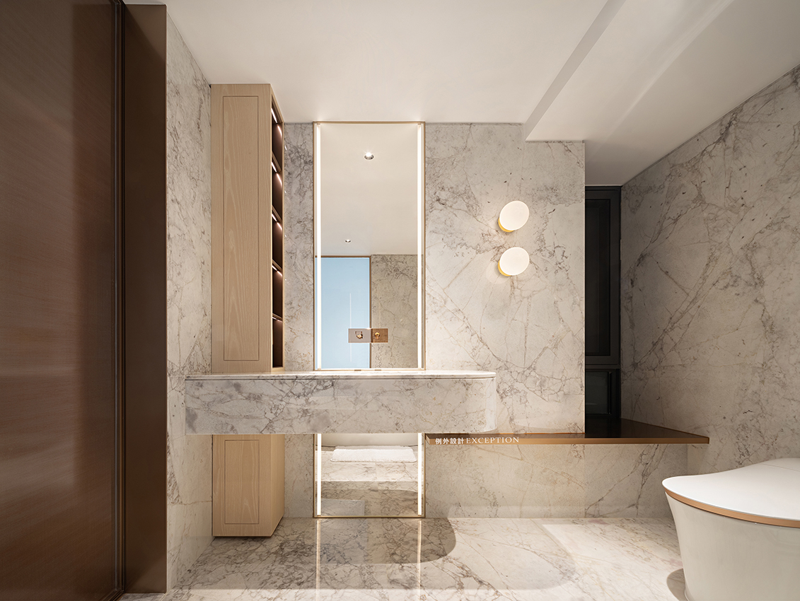 主衛(wèi)墻地通體大理石鋪敘清爽整潔的視感,洗漱的同時放松雙眼,窗外風(fēng)景如畫,空間的便利、優(yōu)雅與居者的個性需求結(jié)合,充滿了生命力。