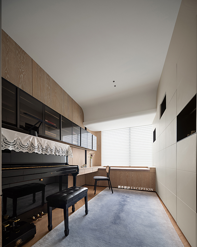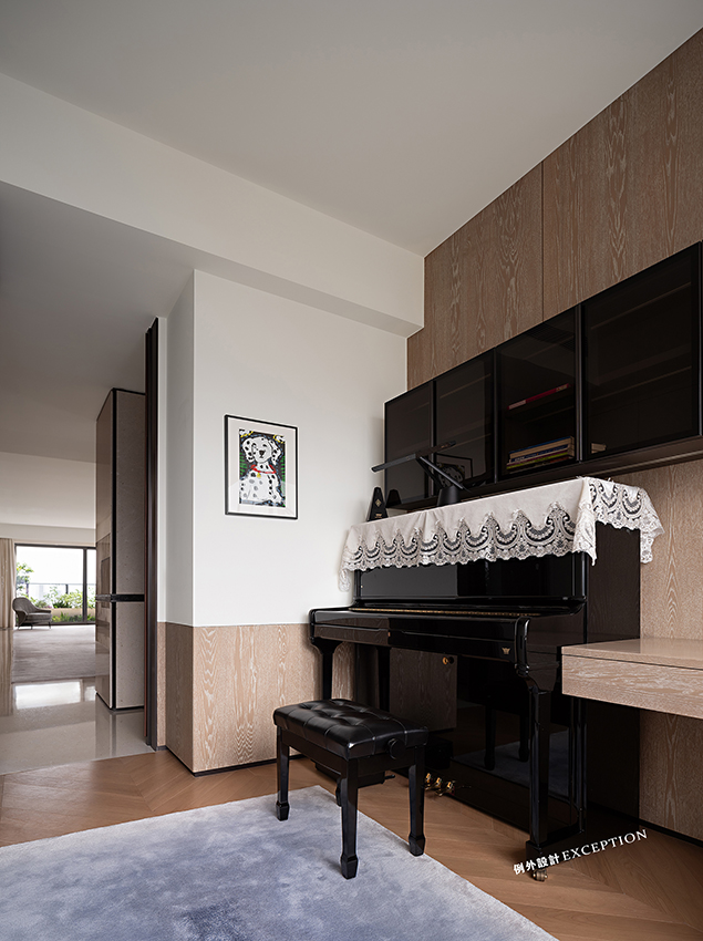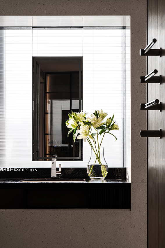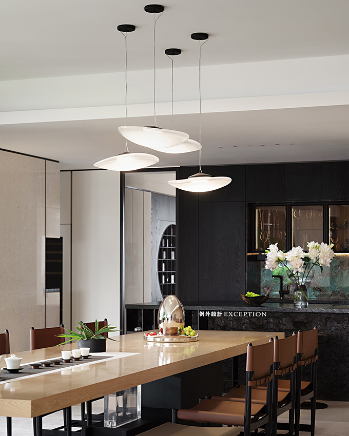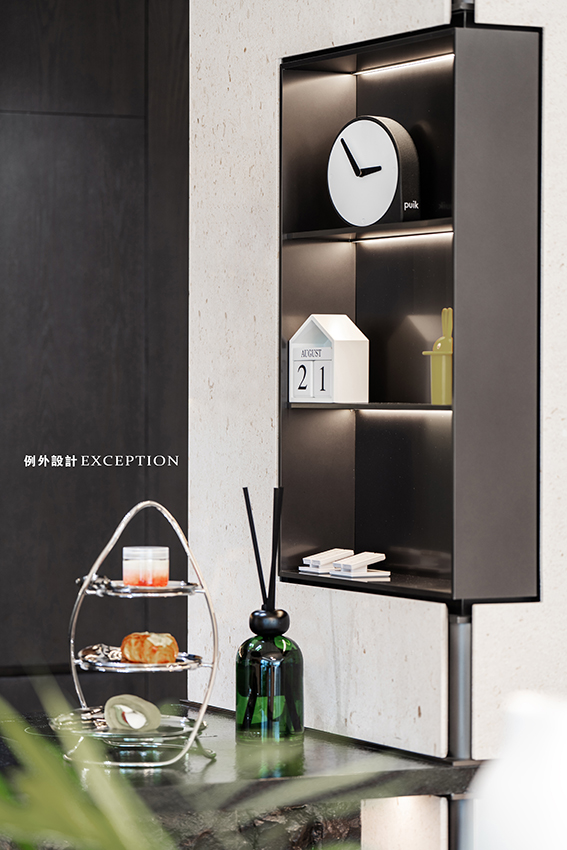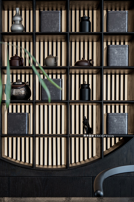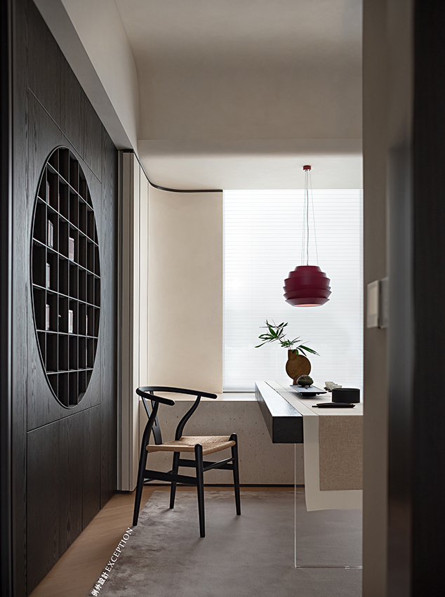 茶室則是女屋主的私享空間,融入傳統(tǒng)東方的元素,圓月型開放格大方地展示著她對(duì)茶文化的喜愛與品位??臻g整體氛圍雅致,茶臺(tái)借景窗臺(tái),流露出一種通透閑適的平和感。梁實(shí)秋說:“人類的最高理想應(yīng)該是人人能擁有閑暇?!狈怕畹哪_步,細(xì)細(xì)品味茶香,在繁忙都市里也是一種難得的精神享受。
