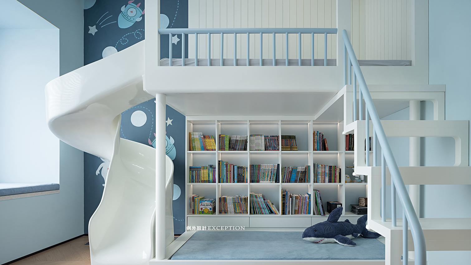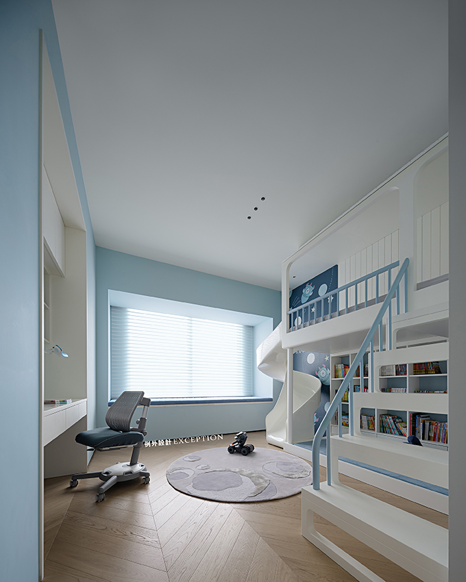男孩房是一個(gè)充滿童趣的小宇宙,神秘的星球,充滿探索精神的宇航員,滑滑梯和睡眠區(qū)的結(jié)合是小男孩一眼愛上的,我們還配置了安靜的閱讀區(qū),為孩子的成長(zhǎng)注入更多的想象。