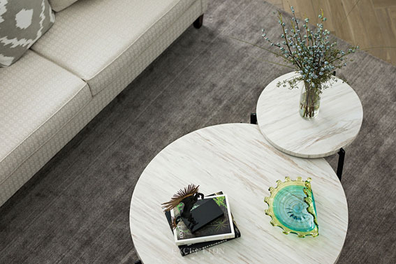 客廳有一種撲面而來的女性氣質(zhì),除了溫柔藍(lán)色帶來的第一視感,還有面料所蘊(yùn)含的神奇魔力:精細(xì)規(guī)則的紋路、面包般的外形與松軟觸感。