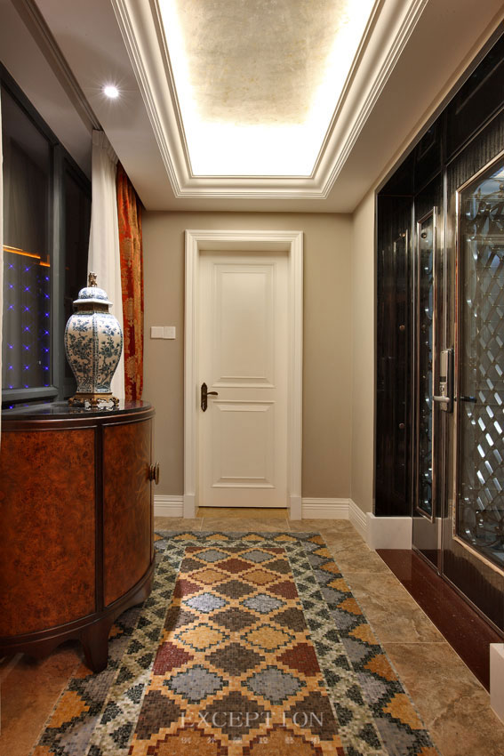 不知道別人是怎么定義愛情的,在我看來,愛情是人世間最大的奇跡和最華麗的冒險——最初互不相識的兩個陌生人,冥冥中命運的齒輪不期卻注定緊緊咬合在一起,歲月流轉(zhuǎn),某個夕陽下的柳樹邊,某個街頭的轉(zhuǎn)角處,我們相遇、相識、相知、相守,相依終老,或甜蜜或憂愁,一路上塵緣羈絆,一步一步走過有你有我的歲月,卻不覺成就了“執(zhí)子之手,與子偕老”的美麗童話。誠如本案業(yè)主的愛情物語,先生偏愛濃郁熱烈的美式風情,而太太執(zhí)著清新內(nèi)斂的歐式風格,不可調(diào)和的審美視角,唯有愛與設(shè)計才能將其牽引向平衡的兩端。