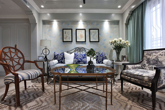 一掃之前的沉悶,藍(lán)色清爽的調(diào)性,恍若海風(fēng)吹起的漣漪。一串串精致的家私陳設(shè),恰是遺失滄海的珠貝,靜待居者來(lái)拾遺。