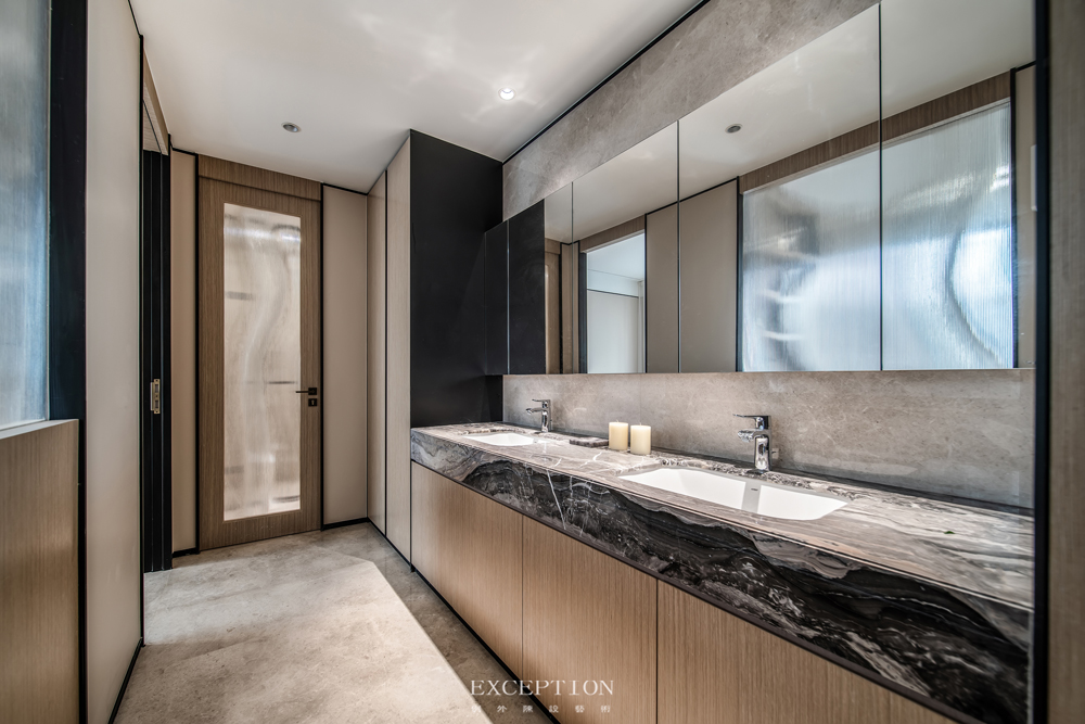 雙盥洗盆、干濕分離、壁龕收納、超寬明窗等設(shè)計(jì),充分考慮了男女主人日常洗漱等待時(shí)間過(guò)長(zhǎng)的問(wèn)題,令每一個(gè)日常的開(kāi)啟與結(jié)束都有靜美且安適的體驗(yàn)。