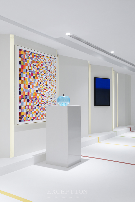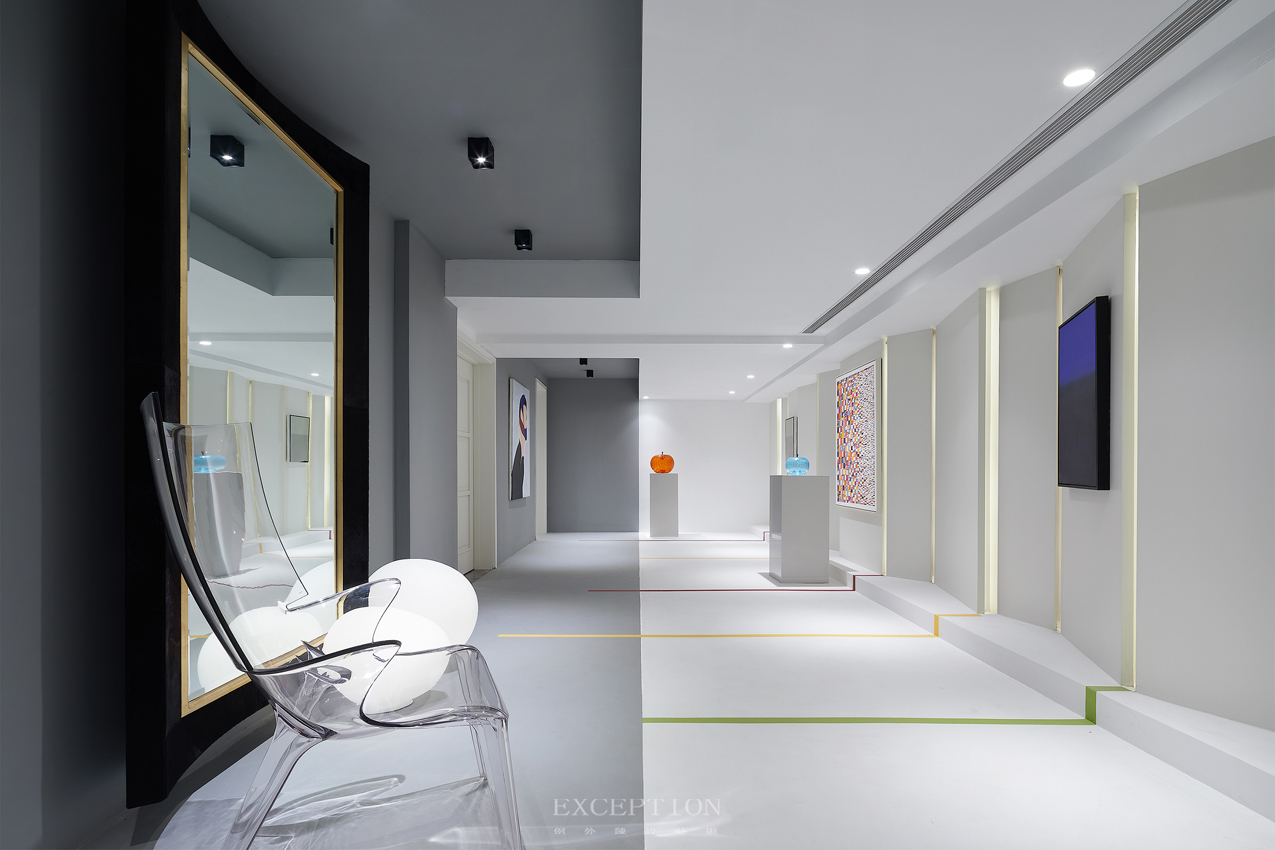 位于負(fù)一層空間的是業(yè)主的私人藝術(shù)廊與藏品展覽室。簡(jiǎn)凈的空間視像,一面素樸,一面超驗(yàn),呈現(xiàn)出藝術(shù)復(fù)雜而多元的樣子。錯(cuò)落而不規(guī)則的墻面設(shè)計(jì)別出心裁,設(shè)計(jì)師特地運(yùn)用差異化燈光,對(duì)不同材質(zhì)、不同主題的藝術(shù)品進(jìn)行意境與氛圍的營(yíng)造,或凝練,或輕盈,流露出藏品獨(dú)特且不凡的藝術(shù)氣質(zhì)。