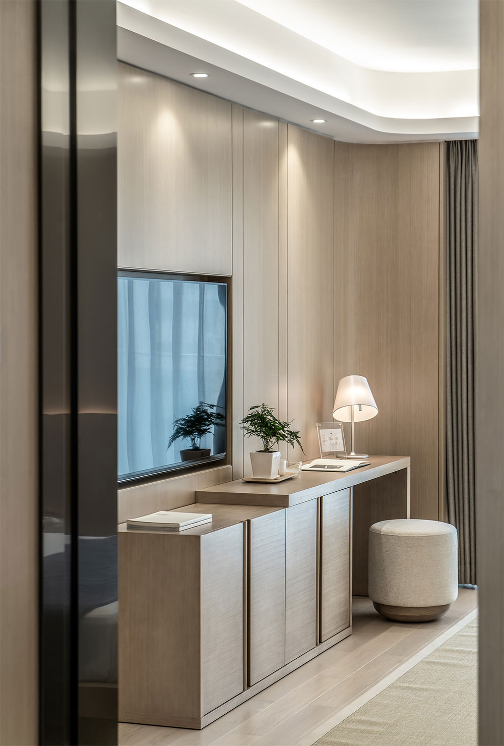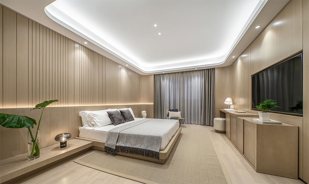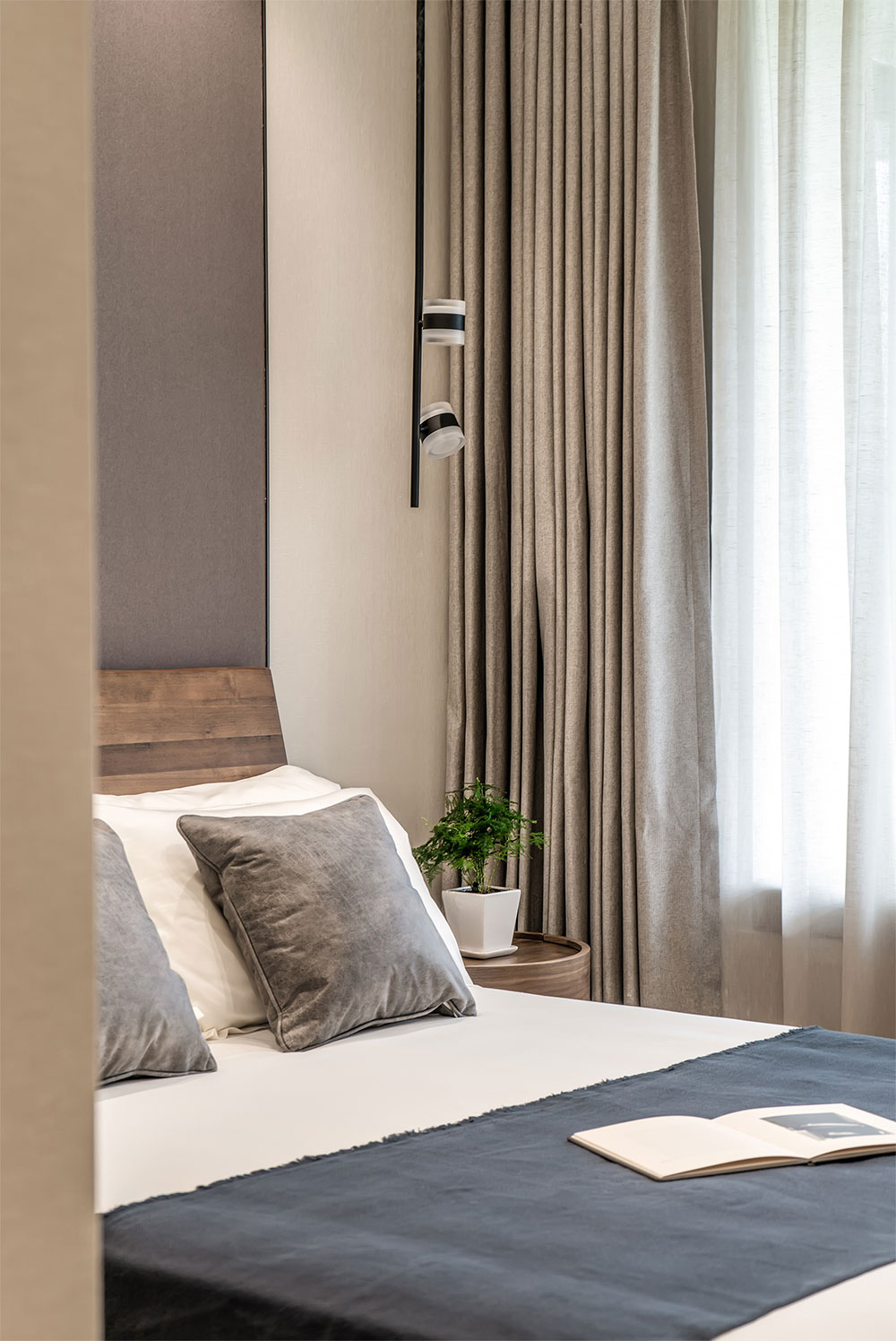 日本建筑師津端修一認(rèn)為:“我們會(huì)做夢(mèng),所以我們目光長(zhǎng)遠(yuǎn)。”家不僅是一個(gè)供人睡覺的地方,更是見證居者品位追求,啟發(fā)人們向上的起點(diǎn)。在安靜的睡眠空間里,三兩枝青翠,活潑可愛,柔煦的燈光輝灑,清雅蘊(yùn)藉,以一種盎然向上的姿態(tài)迎迓歸家的人。當(dāng)居者進(jìn)入放松的休憩狀態(tài)時(shí),一枕清夢(mèng)能喚起對(duì)家的深層次想象。