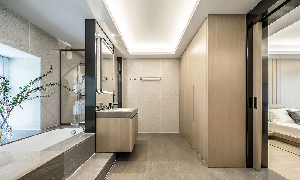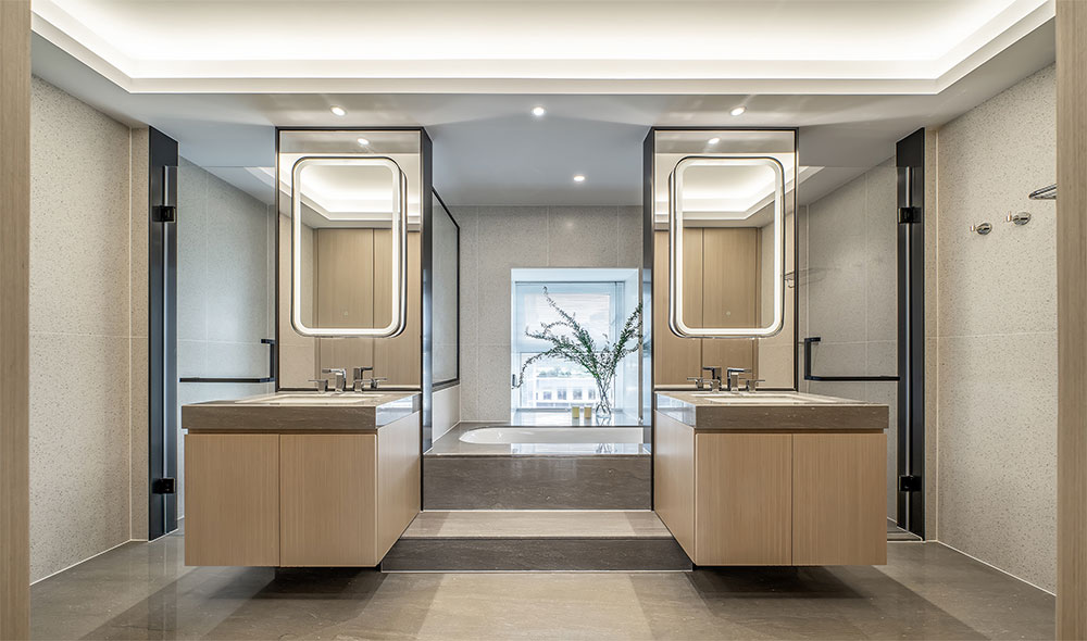 很多時(shí)候我們會(huì)覺得:一切一成不變的東西都是無趣的,很多新的東西往往都源于變化。在主衛(wèi)的設(shè)計(jì)上,采取了雙盆設(shè)計(jì)保證了使用上的靈活性和便捷性,同時(shí)在光影、鏡面的反射上帶來溫情的人文影像,讓人發(fā)現(xiàn)新的樂趣。