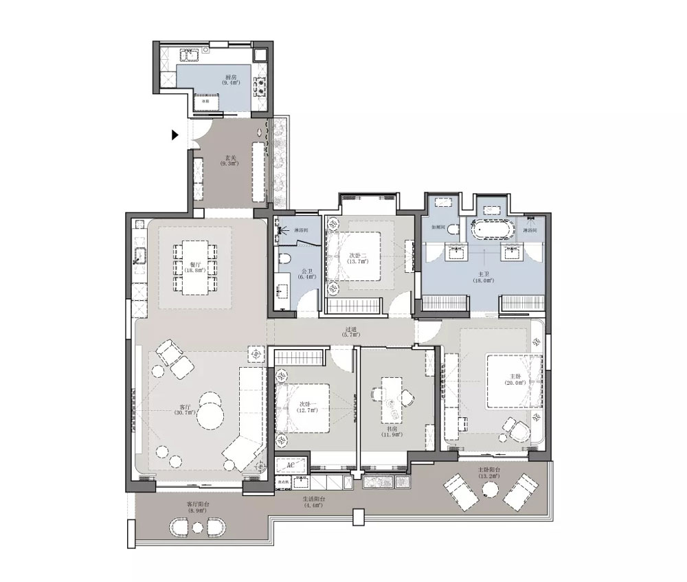 我們的客戶打算將這套三湘海尚的豪宅作為出租房使用。即使是出租房,也給予其豪宅氣質(zhì)的設(shè)計(jì)標(biāo)準(zhǔn)。希望通過精心的設(shè)計(jì)讓租戶能感受家的溫暖,用輕松美好的方式去感受人生,在出租房里也能過上品質(zhì)生活。