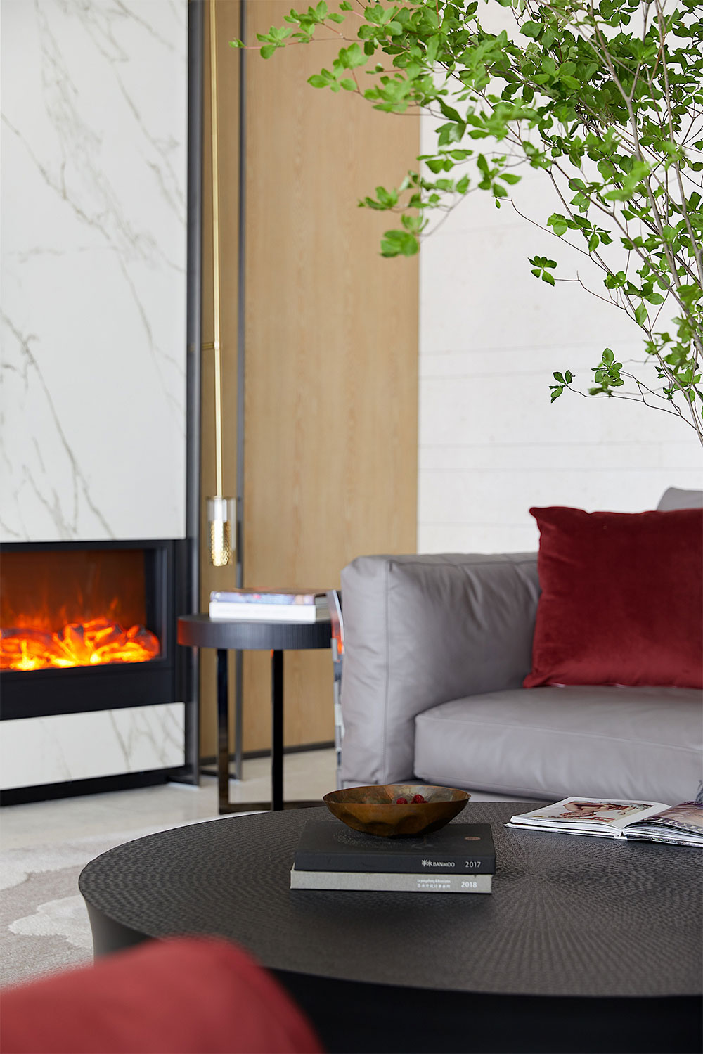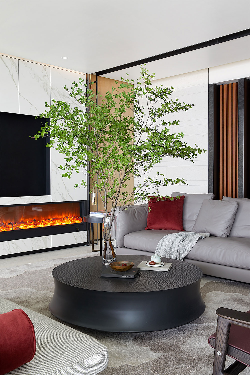 空間褪去浮華的裝飾,以素白與雅灰的色調(diào)統(tǒng)籌,濃郁的中式正統(tǒng)朱紅色揚(yáng)起節(jié)奏感,氣韻透著一絲古雅,卻不顯得陳舊厚重。國(guó)內(nèi)外高品質(zhì)家具部品的構(gòu)設(shè),營(yíng)造一室端然格調(diào)、雅澹氛圍。藝術(shù)與生活的邊界在此彌散,空間的氣韻是靜雅且清閑的,賦予人的是日常起居的和諧與舒適之感。
