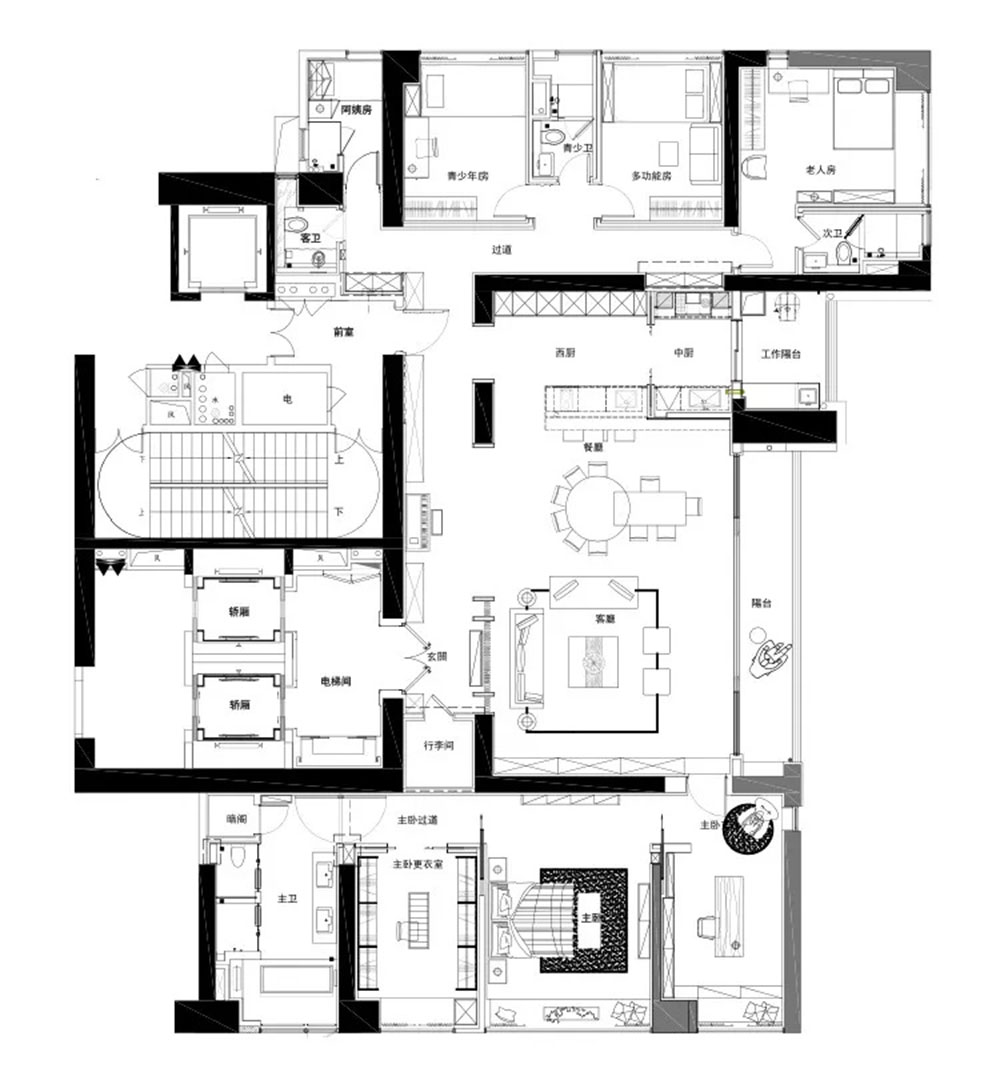 在設(shè)計(jì)師鄭鴻的理解中,定制設(shè)計(jì),是做到對(duì)每一個(gè)家庭成員的關(guān)愛。在定制的私宅當(dāng)中,老人有適配自己的悠閑自主、舒適便捷的老年生活場(chǎng)景,青年人有自由輕松、個(gè)性獨(dú)特的生活態(tài)度,孩童有多彩多姿、童趣盈盈的成長(zhǎng)環(huán)境。