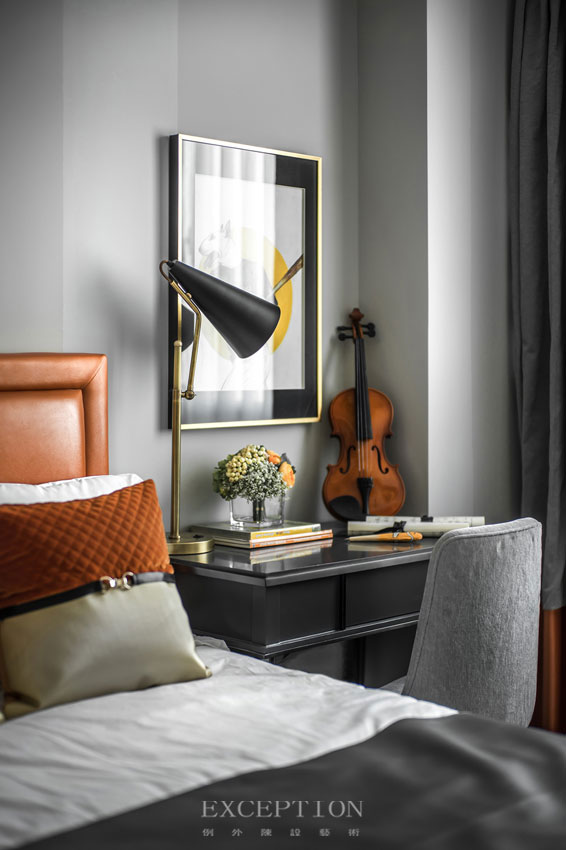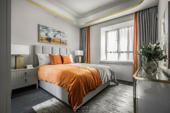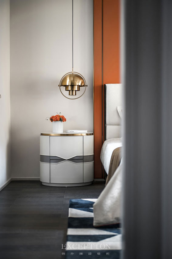相較于熱情洋溢的客餐廳,主臥力求在舒適與藝術中尋求共鳴,但仍不放過任何一絲彰顯優(yōu)雅的細節(jié)。