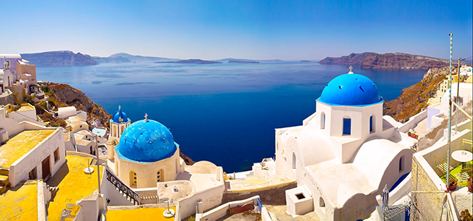 圣托里尼島就是藍(lán)白相知的色彩天堂,無(wú)數(shù)的白色小屋依山而建,屋墻全是白色,屋頂為深藍(lán)色,與天空、海洋渾然一體,形成了地中海獨(dú)有的景觀。