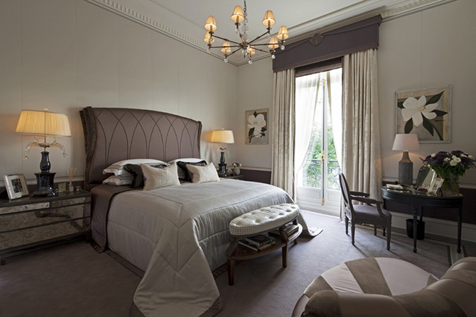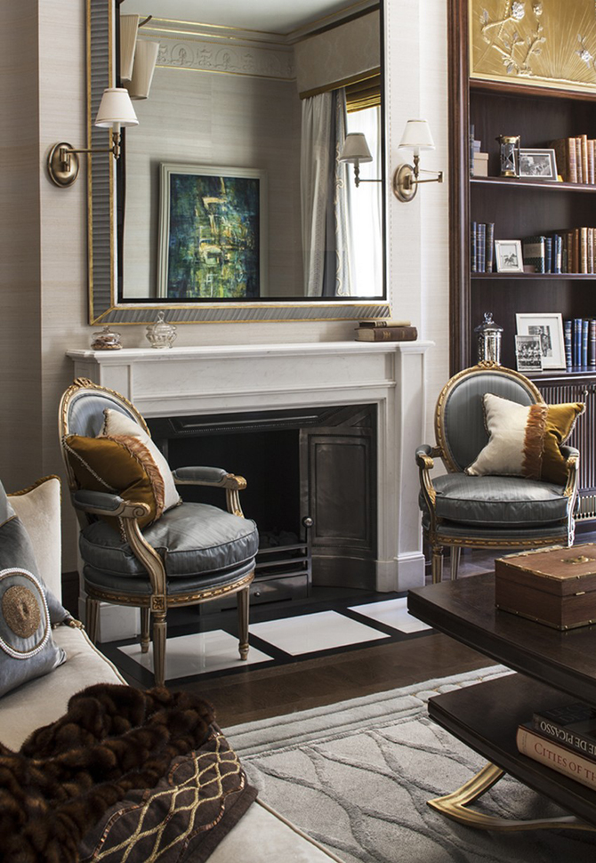 無(wú)論是家具還是地毯、枝形吊燈還是真絲墻紙上的圖案,全部都是以高規(guī)格量身定制。這是一套帶套房的臥室、客房和傭人房的大公寓,這里既體現(xiàn)了法式的傳統(tǒng)優(yōu)雅,又融入了現(xiàn)代時(shí)尚的裝修風(fēng)格,設(shè)計(jì)師將這兩點(diǎn)和諧共生。這間公寓引人注目的特點(diǎn)或許是走廊里那個(gè)受到巴黎新藝術(shù)啟發(fā)而制成的孔雀羽毛玻璃板。設(shè)計(jì)師花了一年時(shí)間來(lái)尋找他中意的材質(zhì),終發(fā)現(xiàn)只有這種材質(zhì)才能精準(zhǔn)地表達(dá)出他想表現(xiàn)的那種意思。其他亮點(diǎn)也不勝枚舉,手繪真絲墻紙材質(zhì)特別,在自然光線的照射下反射出柔美的光暈。
