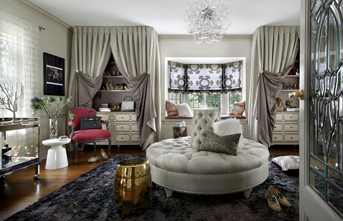看到它,腦中不僅浮現(xiàn)一個詞:女王范兒!定制的簾幔封存著屬于自己的故事,手感柔糯的地毯配上舒適的圓形更衣凳,奢華氣質(zhì)咄咄逼人。