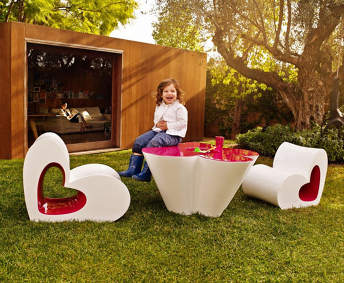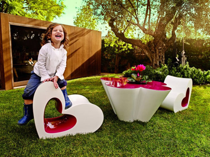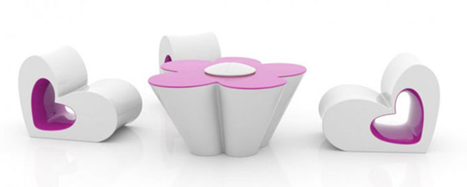 設(shè)計師Agatha為西班牙家居品牌VONDOM設(shè)計了一套兒童家具Agatha Collection,這套家具系列擁形狀特別,設(shè)計師站在兒童的視角,通過塑造立體的鮮花、心形等符號,傳遞出新鮮、純真的情愫,洋溢著童趣的桌椅瞬間點(diǎn)燃我們體內(nèi)的活力因子。