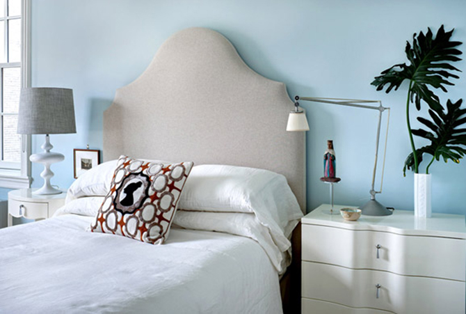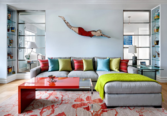 整個(gè)公寓采光條件都非常好,在純白與淺藍(lán)的背景下,珊瑚色、水藍(lán)色、黃綠色構(gòu)成了房間的主要點(diǎn)綴,迪曼諾夫人習(xí)慣每天早上坐在這張餐桌邊享受一杯咖啡,品味生活的美好。如果你也喜歡大海,不知道這樣的海洋主題之家有沒有給到你一些靈感呢?