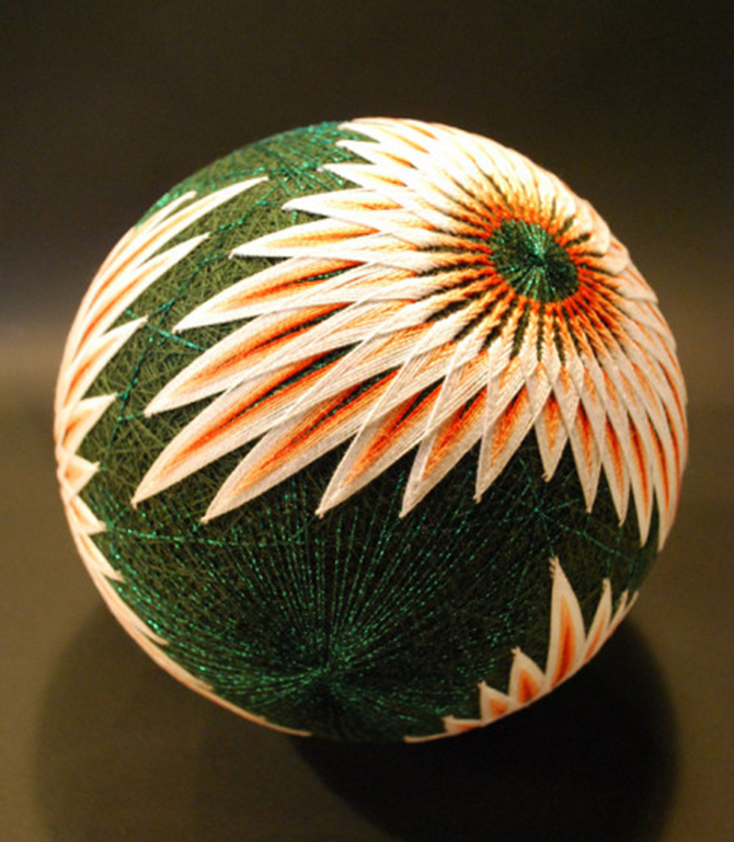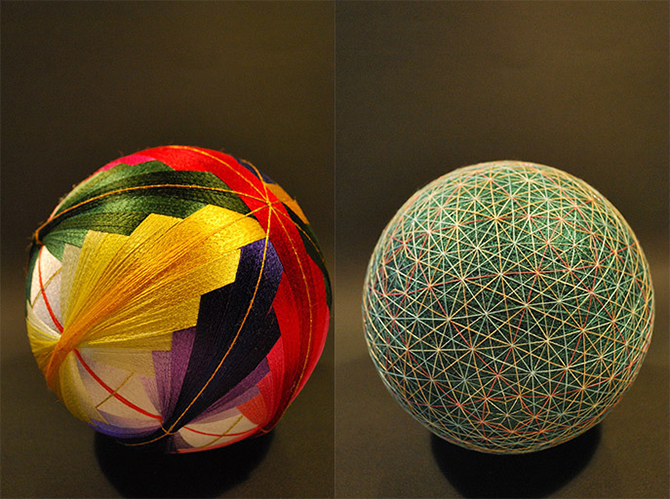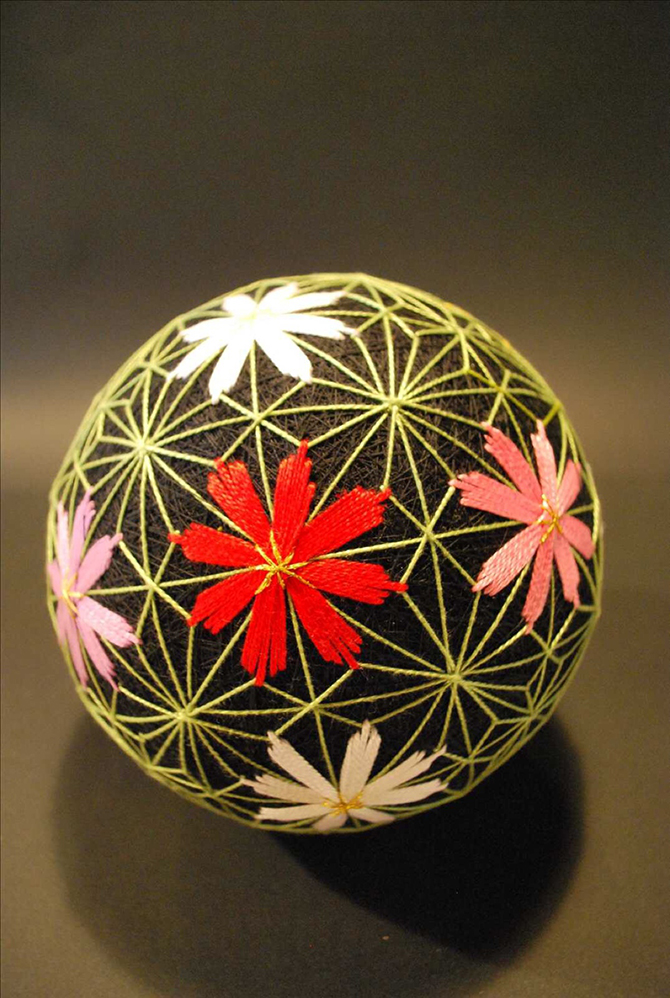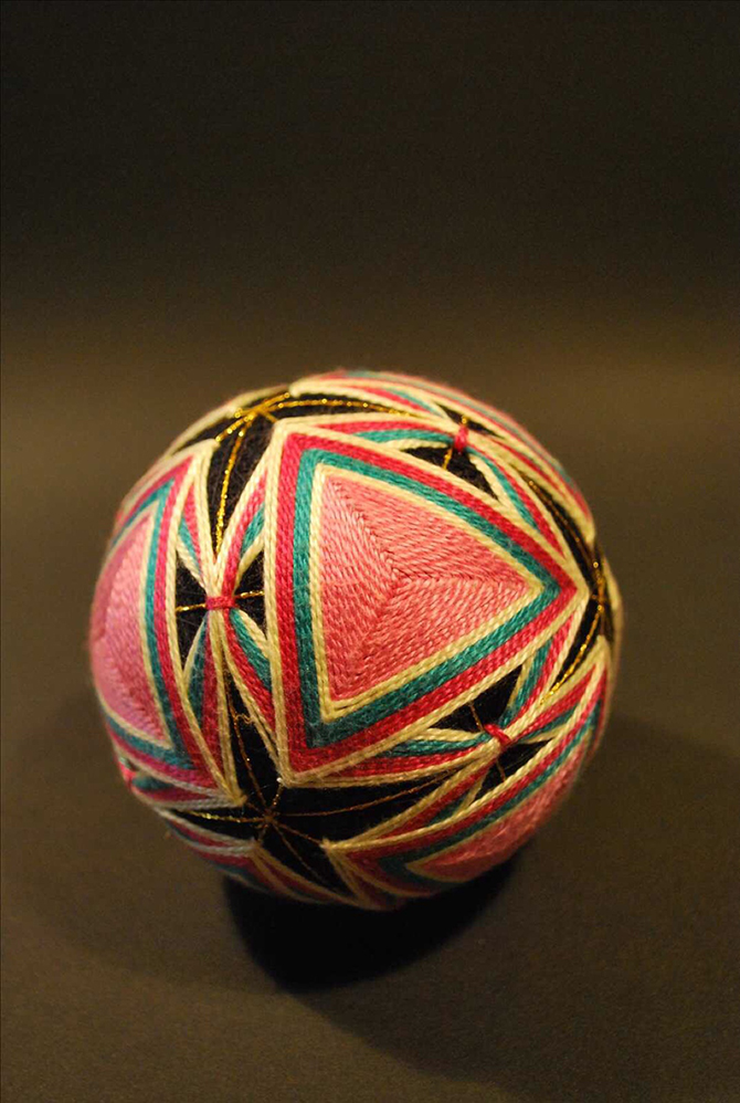 起初,鞠造型普通,但是在日本經(jīng)過幾個(gè)世紀(jì)的傳承,發(fā)展為一種民間手工藝術(shù),成為了一種日本傳統(tǒng)玩具,喚作手鞠球(日語:てまり、手まり)、又稱手球。它使用制作和服剩余的邊角料,填充成球狀,然后用多彩絲線纏繞成幾何圖形,形態(tài)略大于壘球,略小于手球。