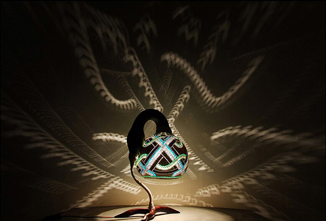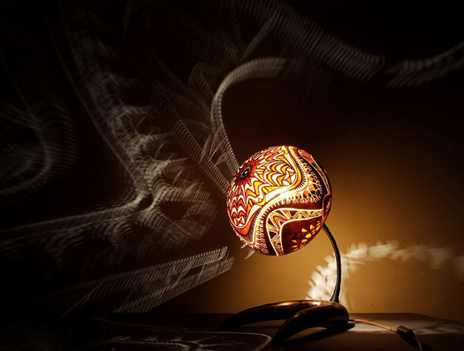 來自波蘭的Przemek Krawczynski 曾經(jīng)是一名建筑工程師,機緣巧合,當他2009年次與葫蘆的接觸后,便發(fā)覺了這種天然素材的可塑性,于是全心全意親手制作出與眾不同的燈飾產(chǎn)品。他所成立的品牌名為CALABARTE,推出的產(chǎn)品均以生長于塞內(nèi)加爾的葫蘆為原材料,由于葫蘆質地較為堅硬,因此每件產(chǎn)品他都要耗費兩個月左右的時間完成。