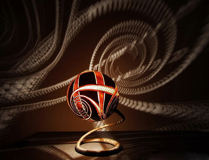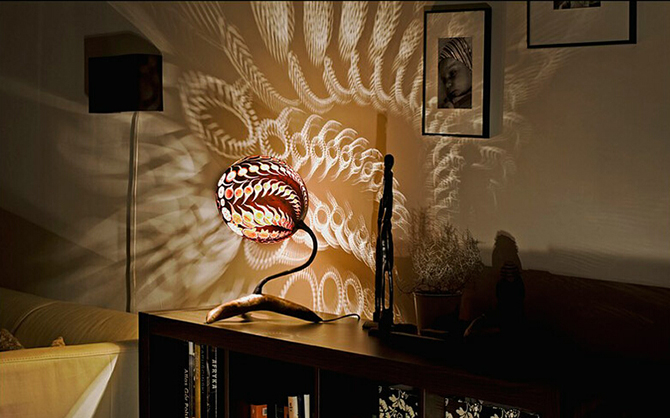 這款臺燈除了采用純天然物料完成之外,設計師還在葫蘆上雕刻、鉆孔、油漆以及打磨,從而令產(chǎn)品的外觀不僅有豐富的色彩,更使燈泡發(fā)出的光亮被精雕細琢的外殼分割后,形成特殊的紋樣投射到四周墻壁上。另外,由于每件產(chǎn)品均由 Przemek Krawczynski 親手制作,這不但傾注著設計者的一份心意,亦同時屬于一件獨一無二的藝術品。后工業(yè)時代,卷土而來的手工工藝,因個性而貴得,因親善自然而讓人迷戀。