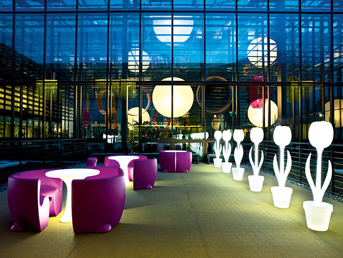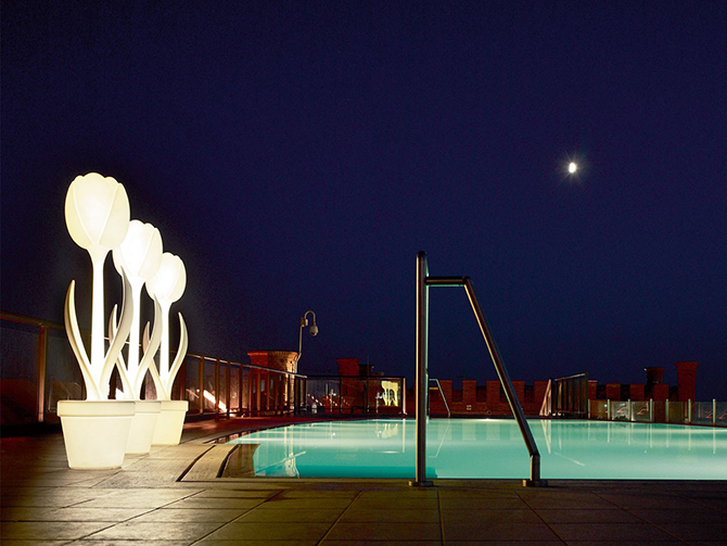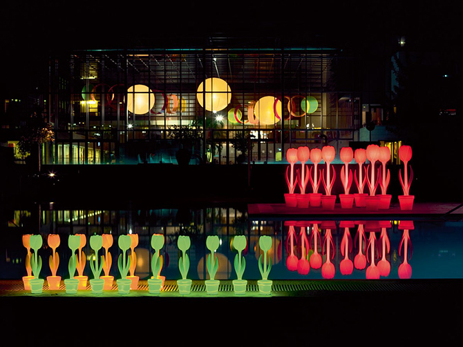 而XL型Tulip Lamp適用范圍更大,花園里、泳池邊都是不錯(cuò)的選擇,此外還可以通過遙控器調(diào)整光色、亮度。XL版本的一大亮點(diǎn)是采用了LED,保證了低功耗,一個(gè)光輸出保證了精確的亮度優(yōu)化,同時(shí)可用腳開關(guān)體現(xiàn)了人性化的考量。當(dāng)然,設(shè)計(jì)師也考慮到它可能因?yàn)轱L(fēng)大而被吹倒,XL版本采用了氯丁橡膠電纜進(jìn)行地板緊固,完全打消了用戶的顧慮。屆時(shí),夜幕降臨時(shí)只需安心享受舒適浪漫的郁金香燈光派對(duì)了。
