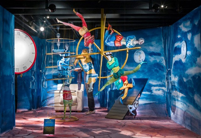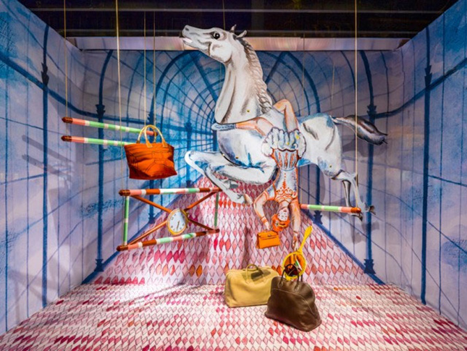 櫥窗藝術設計無疑是一項了不起工作,需要充分發(fā)揮想象力把那個小小的空間充滿美麗的情節(jié),給觀眾以強烈的藝術感染力,達到刺激消費者感官的目的。這些具生命力,精致及優(yōu)雅的展示道具,傳遞著與愛馬仕同樣的豐富想象世界,邀請參觀者來發(fā)現(xiàn)以及再發(fā)現(xiàn)愛馬仕卓越的產品。