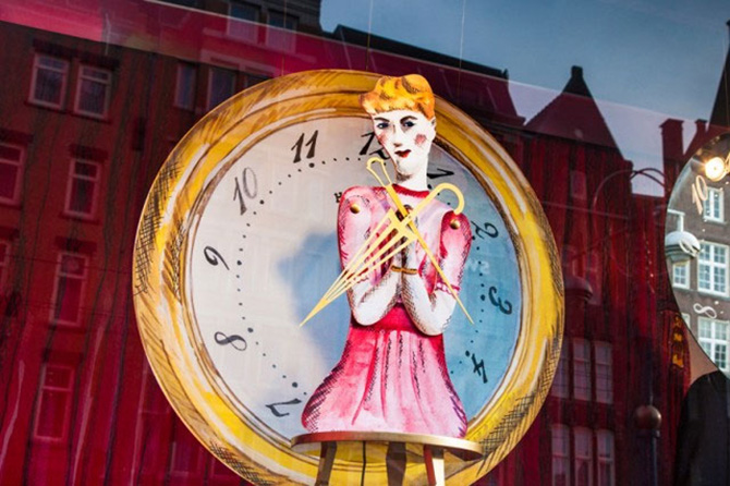 一直秉承著超凡卓越、極至絢爛的設計理念的愛馬仕,造就優(yōu)雅之極的傳統(tǒng)典范。其櫥窗設計也帶給人們這樣的感覺。許多國際知名設計師都曾受邀為愛馬仕設計櫥窗。而你現(xiàn)在所見就是其在阿姆斯特丹的百貨 De bijenkorf 的櫥窗設計,作者是荷蘭新一代女設計師Kiki van Eijk。