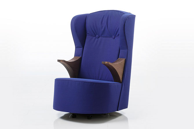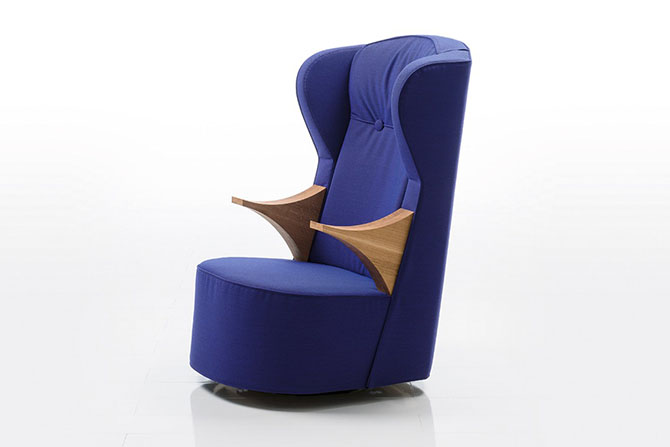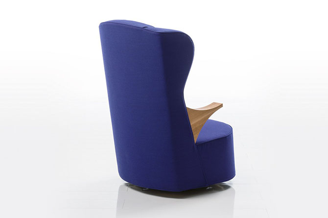 家居軟裝設(shè)計師表示,一把舒適的躺椅必須有足夠的墊料和適當?shù)挠捕?,使其有助于體重的壓力均勻分布于坐骨結(jié)節(jié)區(qū)域。Kati Meyer無疑充分認識到這一點,這把躺椅被他形容成“一個時髦的避風港”,靠背彎成一個極其舒適的曲面輪廓,輕柔包裹住身體,兩粒拉扣將靠背區(qū)分開,輔助調(diào)整坐姿,使頭頸部位也得到完全的放松,而整個表面被羊絨或皮革包覆。另外,別看“poem”顯得笨重,它被設(shè)計成具有傾斜效果的旋轉(zhuǎn)底座,能實現(xiàn)重力轉(zhuǎn)移。