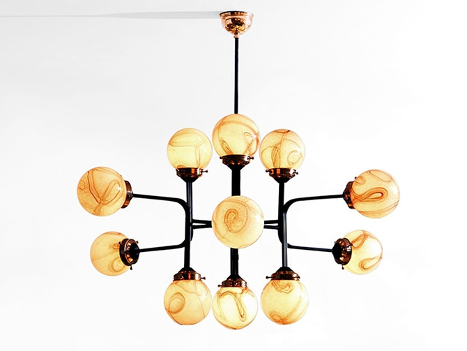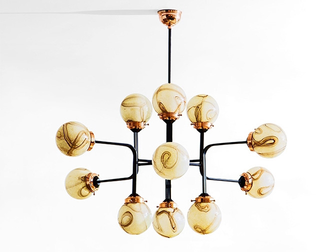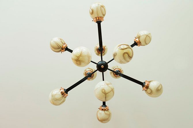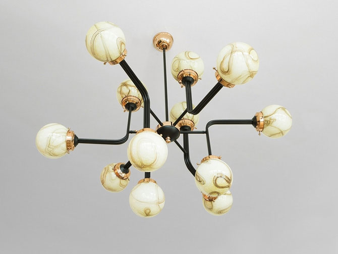 Ziron尺寸寬120厘米,高100厘米,玻璃穹頂半徑16厘米。設計師強調(diào)Ziron的玻璃燈泡來自純手工吹制工藝,燈罩上獨特的花紋就得益于此,如青煙般周身繚繞,在柔和的光線背景下幻化出一種年代感,讓人不由自主感到溫馨沉靜,就像收藏多年的古董,這也是設計師極力呈現(xiàn)的效果。