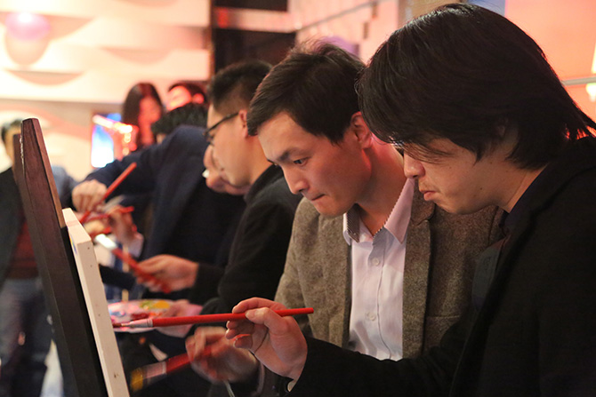尤克里里的伴奏與Carmen女神的傾情獻(xiàn)唱把我們帶入一個(gè)無(wú)憂的童話世界,看另外一邊,硬裝設(shè)計(jì)部的其他同事們正在畫(huà)架前專注作畫(huà)呢!