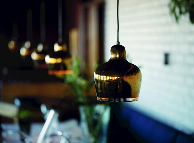 1936年,Alvar Aalto與妻子Aino共同設(shè)計(jì)了芬蘭赫爾辛基Savoy Hotel的一間餐廳,“Golden Bell”作為內(nèi)裝的一部分而誕生。