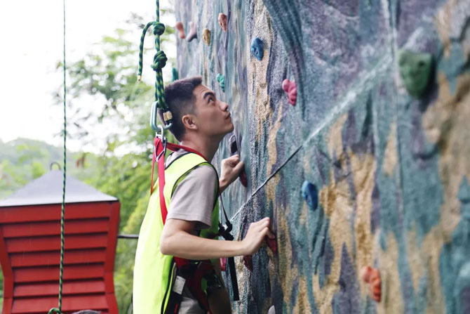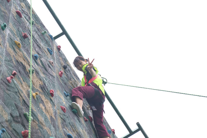 在攀巖項(xiàng)目開(kāi)始前,許多小伙伴認(rèn)為自己不能登頂,但最后很多人都到達(dá)了頂點(diǎn)。