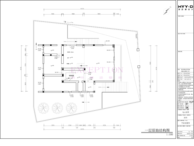 深圳龜山別墅設(shè)計(jì)一層原始結(jié)構(gòu)圖