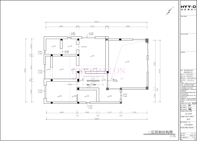 深圳龜山別墅設(shè)計(jì)二層原始結(jié)構(gòu)圖