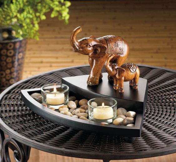 除了帶有禪意的飾品,其實還有許多的飾品藤編竹編的飾品,也形成了強烈的裝飾效果。同時,闊葉的熱帶雨林植物自然也是必不可少的裝飾。