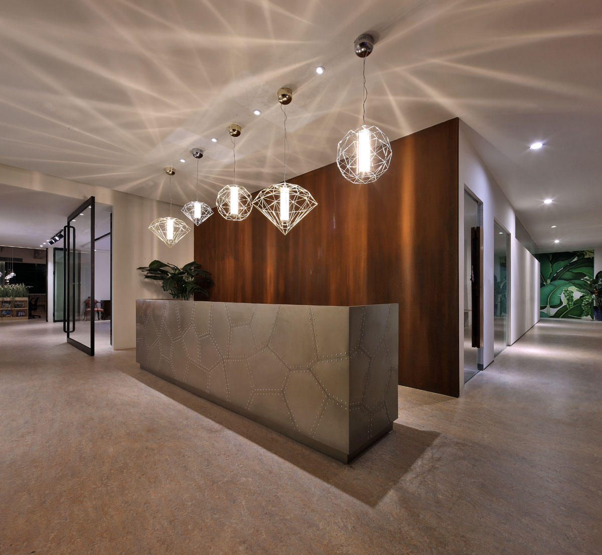 在室內(nèi)設(shè)計(jì)中,過渡與呼應(yīng)總是形影相伴的,具體到天花與地面、桌面與墻面、辦公家具之間……形體與色彩層次過渡自然、巧妙呼應(yīng)的話,往往能取得意想不到的效果。